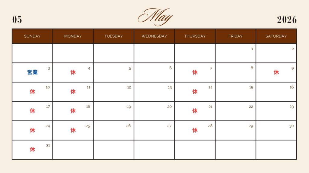 9日(土)はお休みとし代わりに3日(日)は営業します。